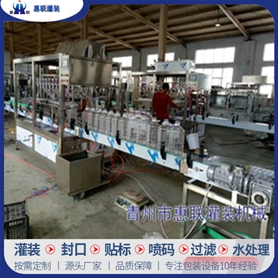 青州市惠聯灌裝機械有限公司是一家集生產研發、銷售、服務于一體的液體灌裝成套設備生產企業,可根據廠家要求設計合理液體灌裝生產線,為用戶提供技術咨詢、設計工藝、場區平面布置、工藝改造、設備安裝調試等完善服務。 公司生產制造各種類型液體灌裝機、過濾機,水處理設備及液體灌裝成套設備。主要產品有:白酒、葡萄酒、黃酒等酒水灌裝機、食用油、機油、潤滑油等油類灌裝機、醬油醋、老抽、生抽等調味品灌裝機、防凍液、玻璃水灌裝機、酒精、84消毒液灌裝機、車用尿素灌裝機、口服液灌裝機、洗滌劑灌裝機等多種液體、膏體灌裝設備,全自動/半自動灌裝機型號多,規格全,洗瓶機、瓶子封口機、打塞機、熱縮機、瓶子烘干機、貼標機、噴碼機、輸送線、裝箱機、水處理設備等全套生產線相關配套設備齊全,自產自銷,一站式購齊,售后無憂。